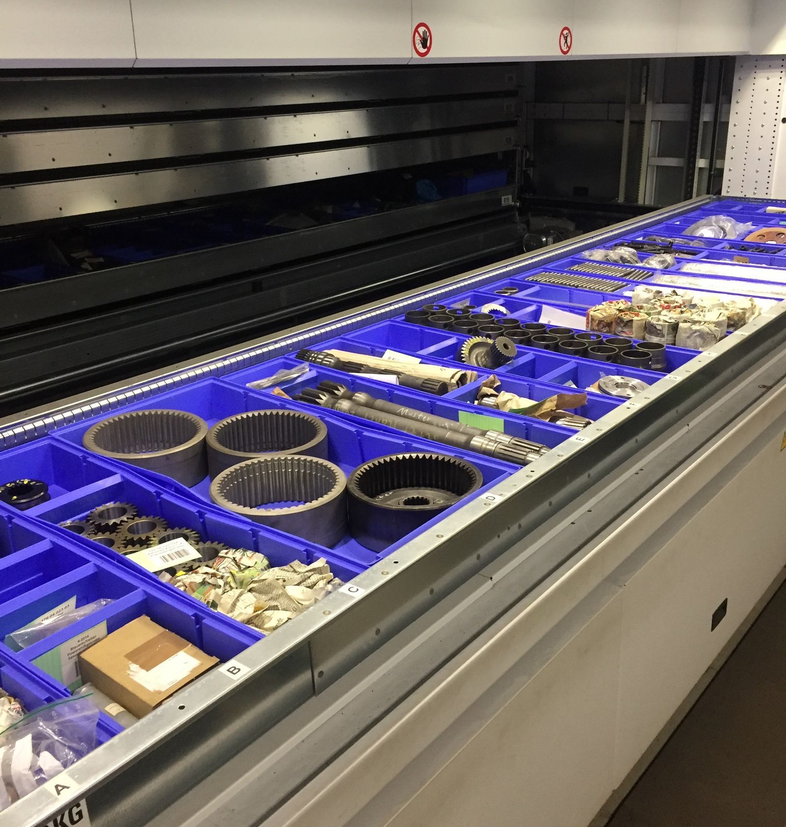 Unser hochmodernes Lagersystem (Lagerlift) ermöglicht es uns, Ersatzteile eines breiten Sortiments auf Lager zu haben, um eine schnelle Lieferung zu gewährleisten.